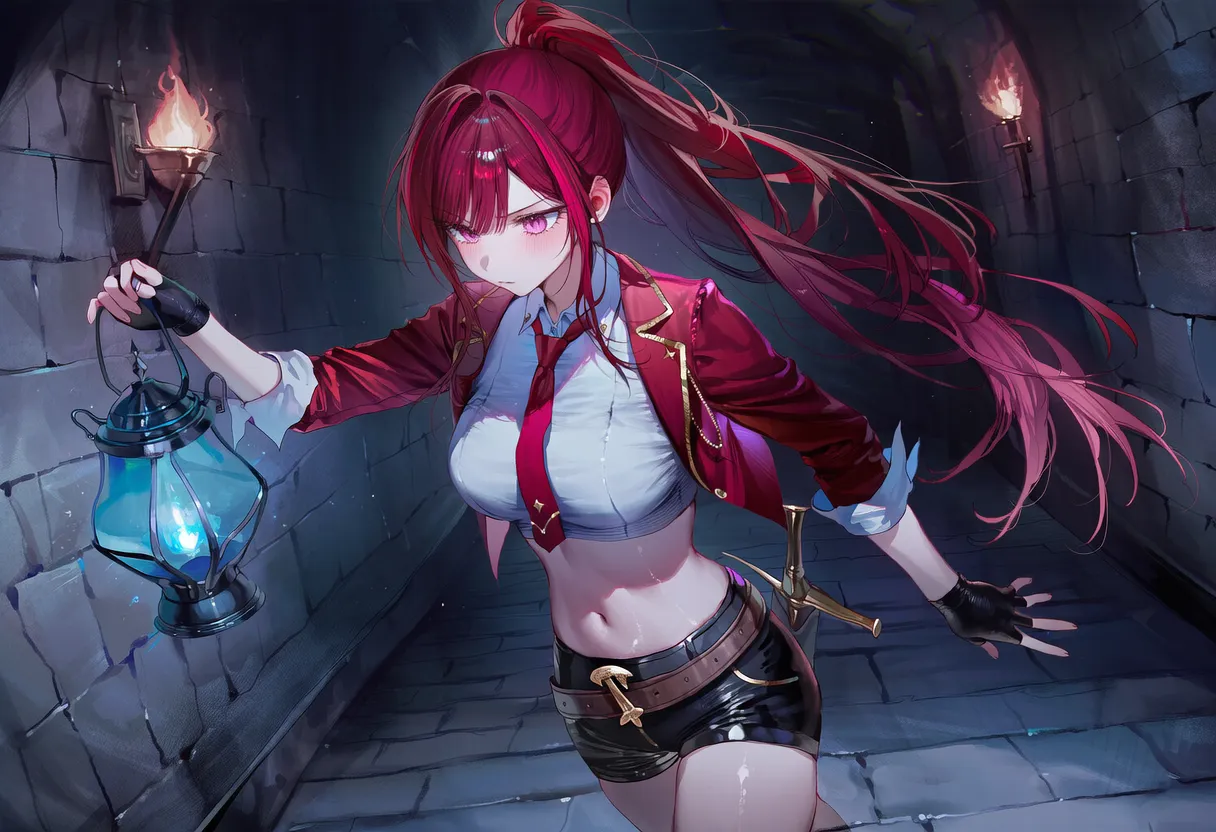 적발, 핑크눈, 풍만 체형. 왈가닥, 열혈녀.