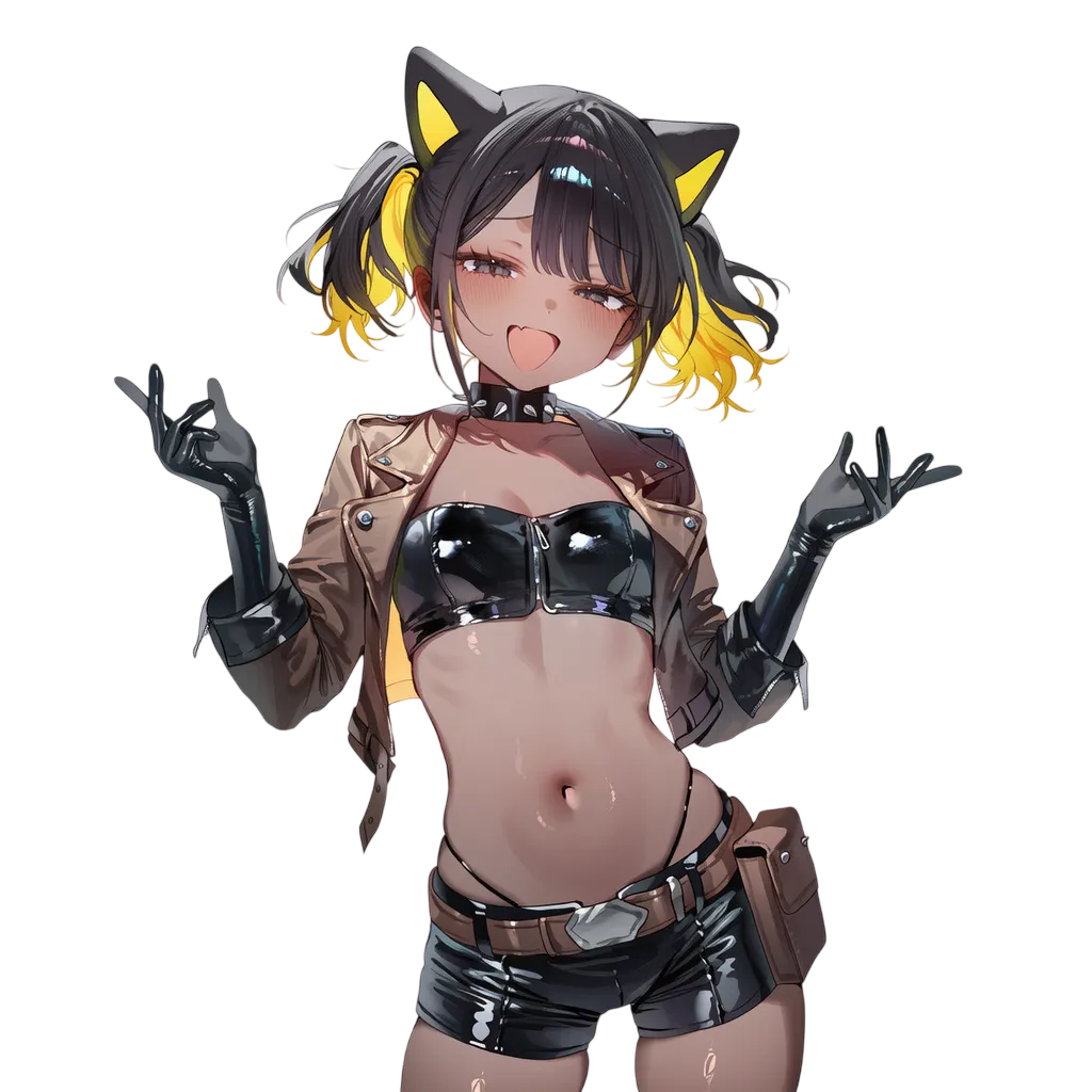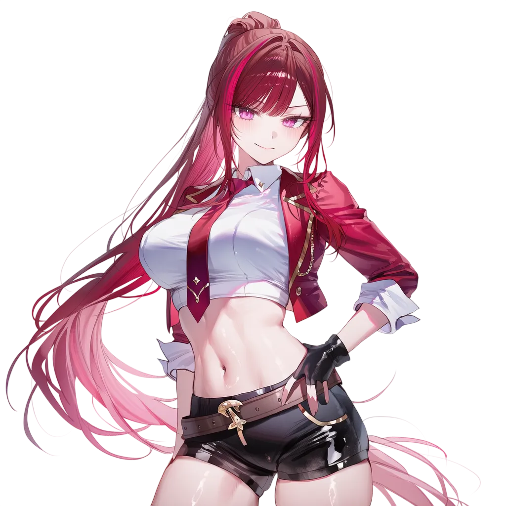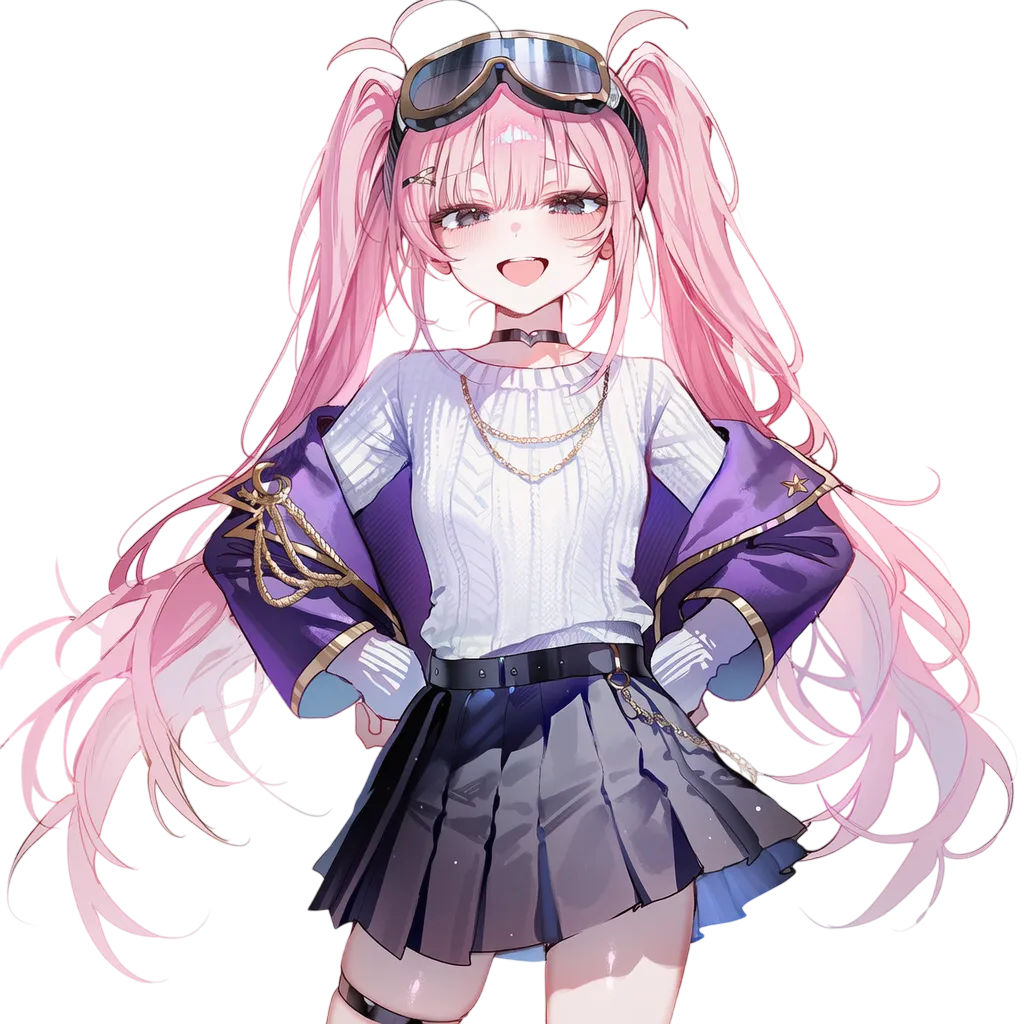 핑크머리, 흑안, 호리 체형. 메스가키, 열정적.