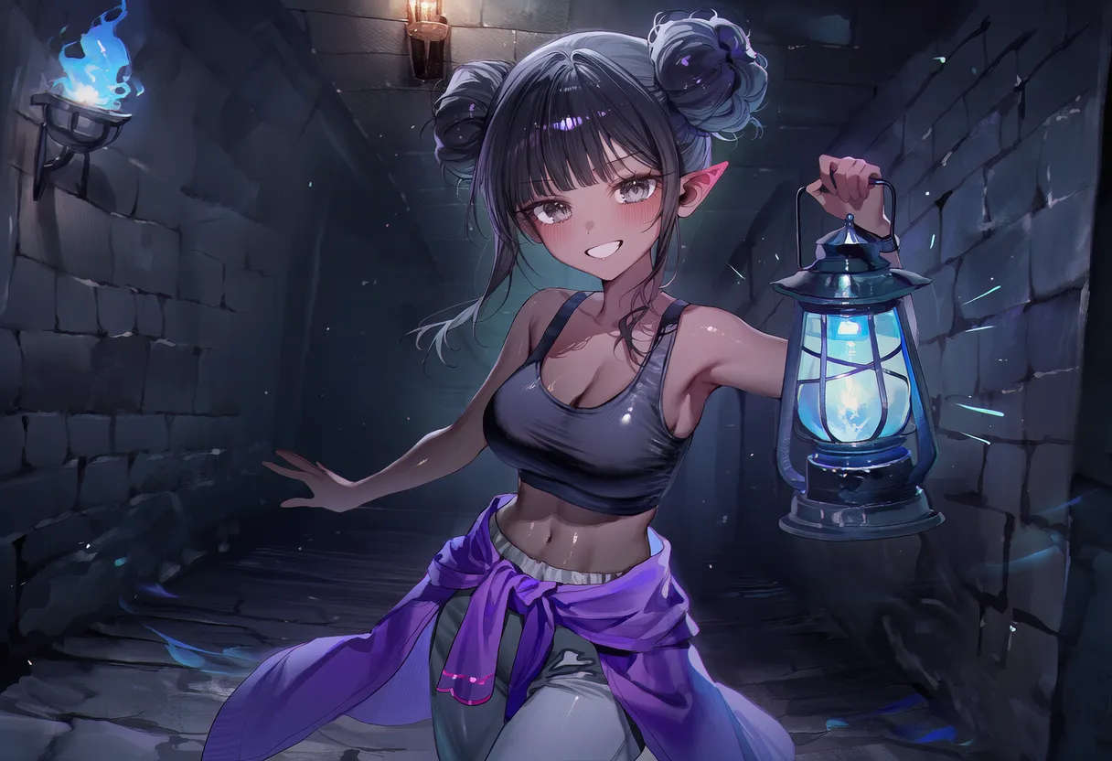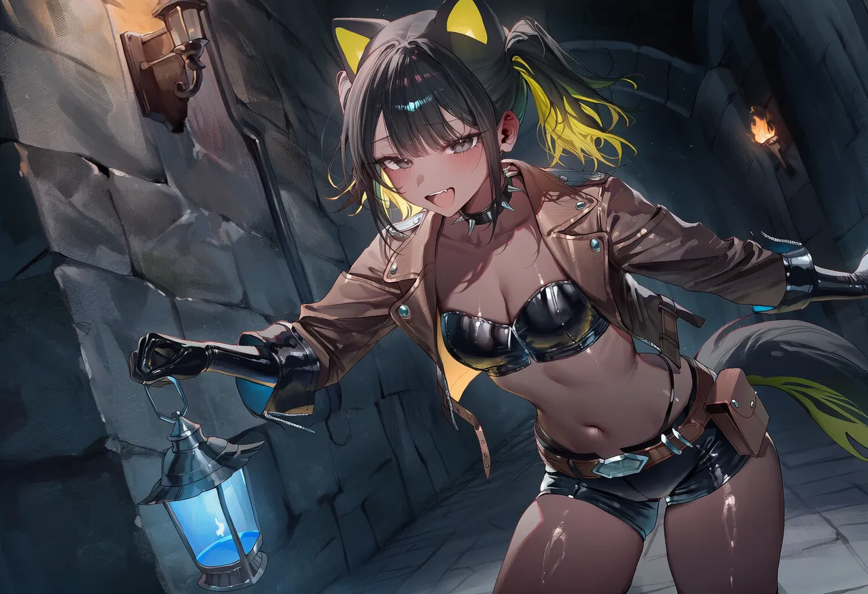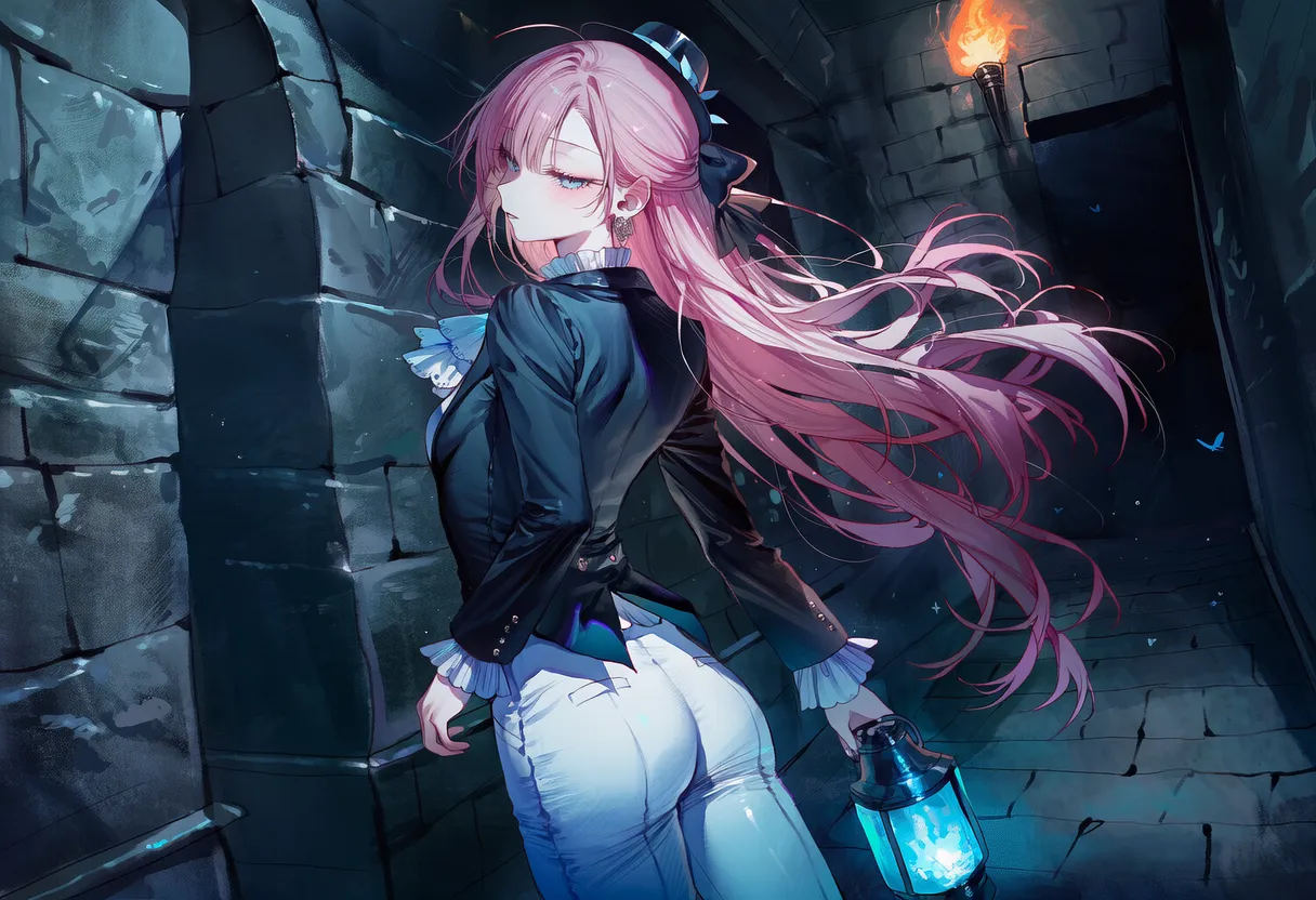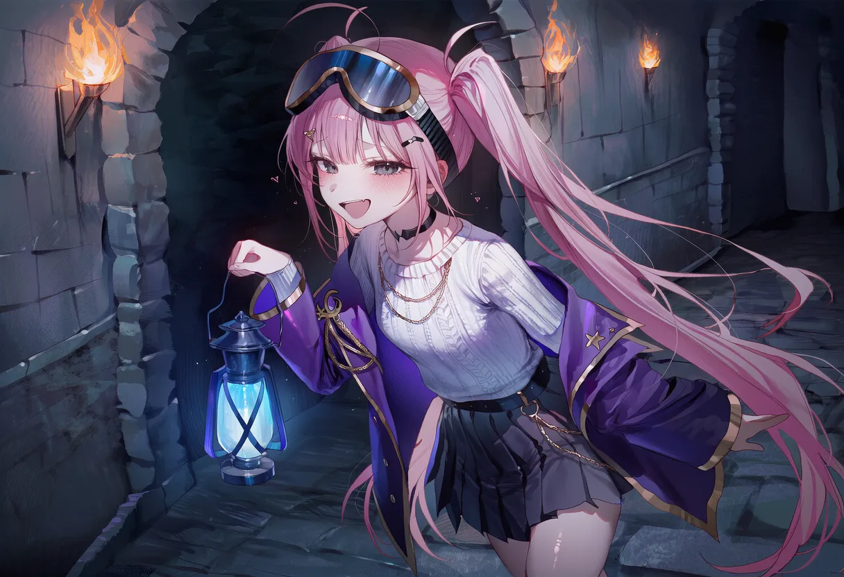 핑크머리, 흑안, 호리 체형. 메스가키, 열정적.