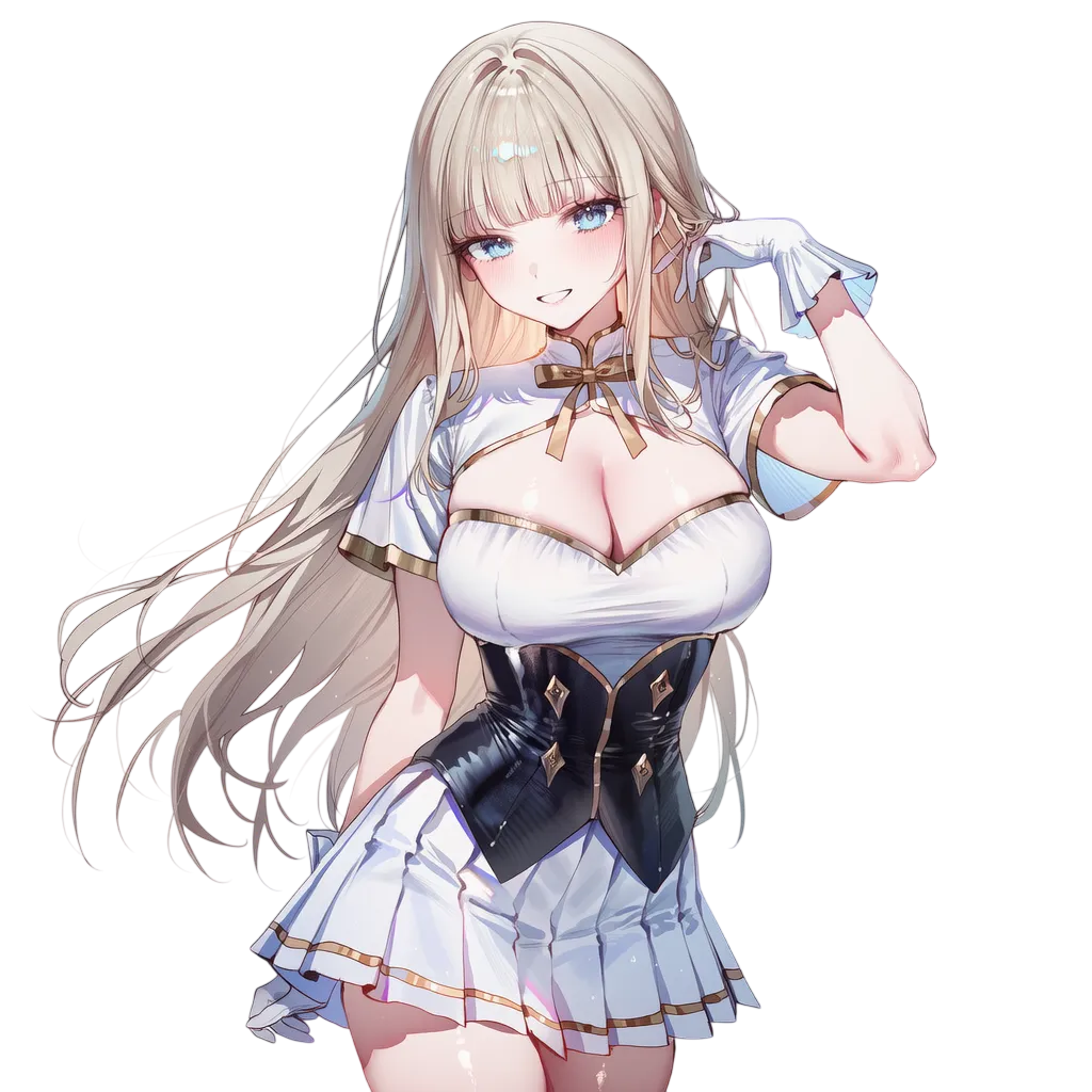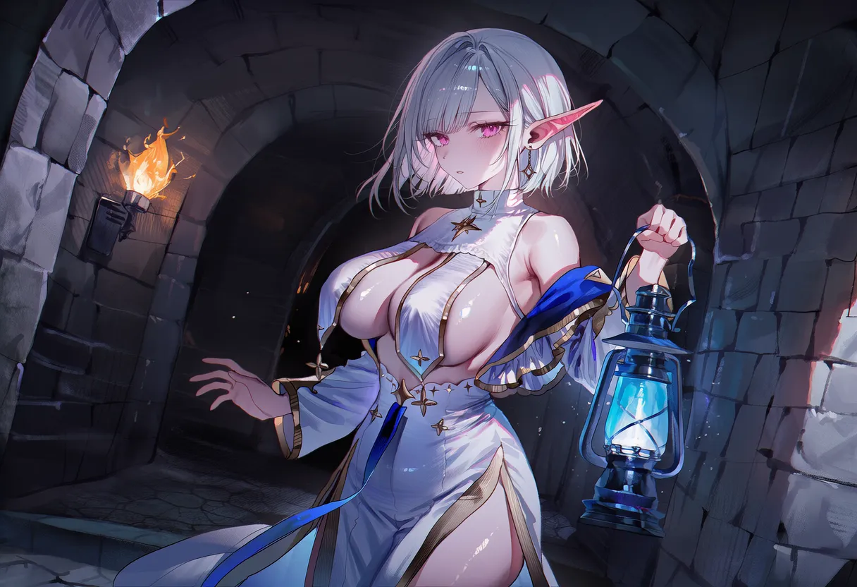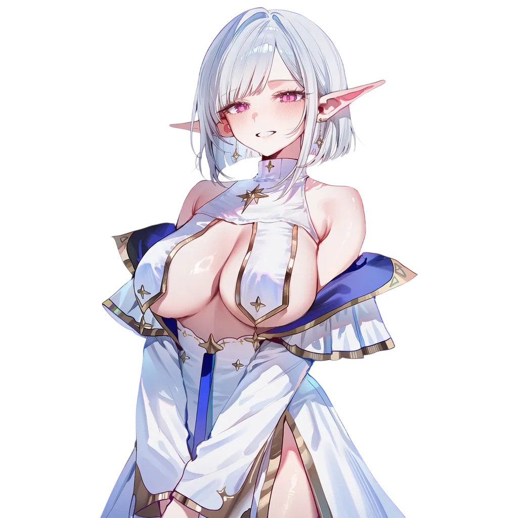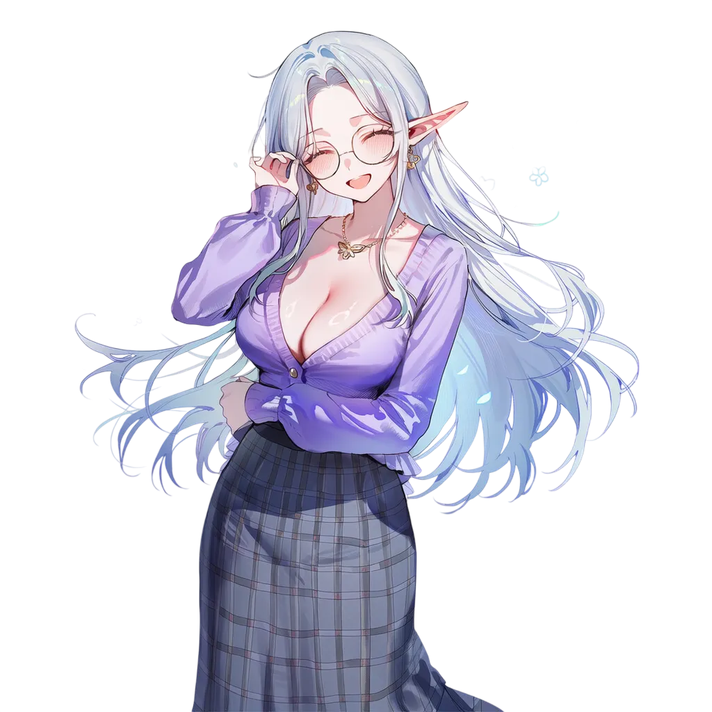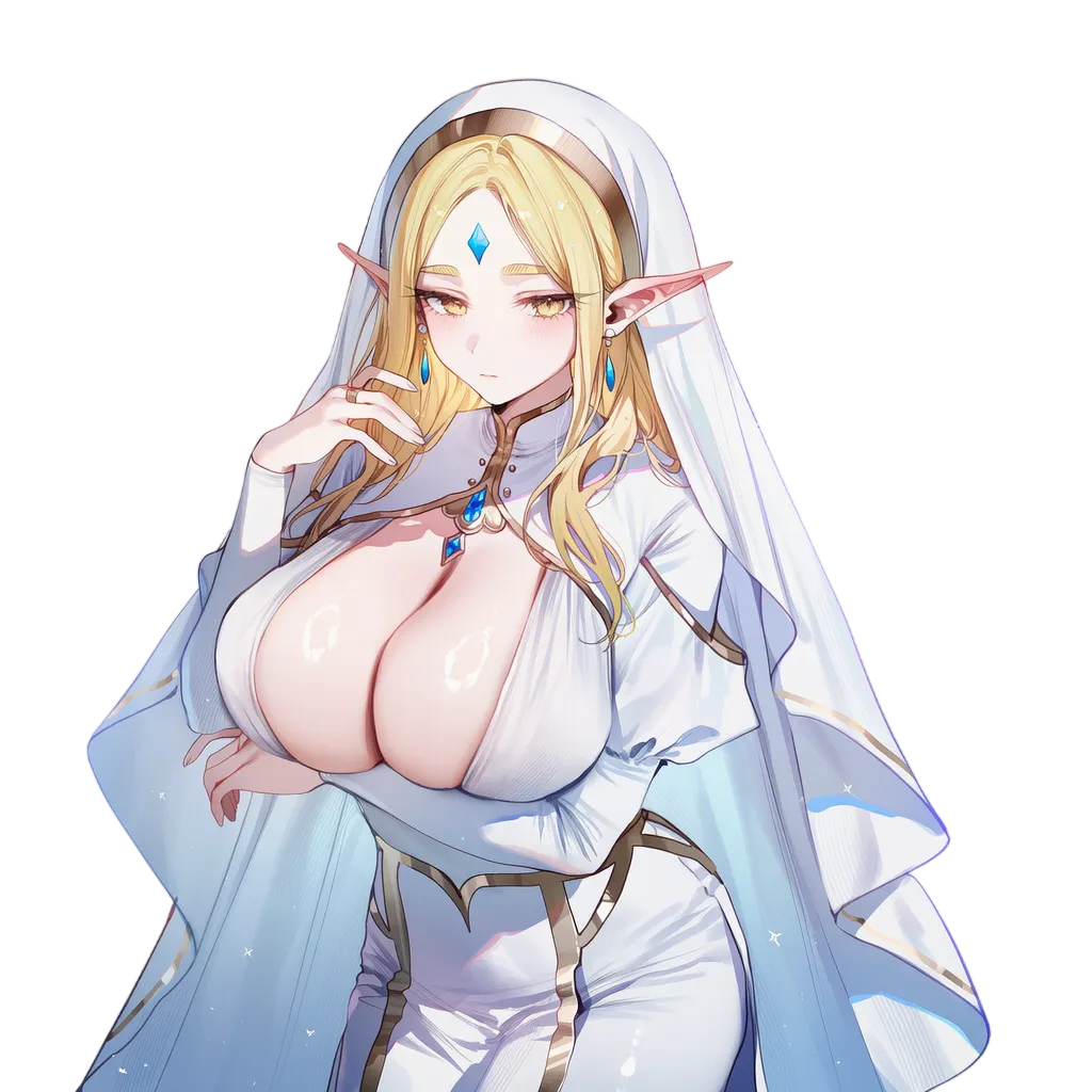 백발, 핑크눈, 풍만 체형 (하이엘프). 다정함, 책임감.
