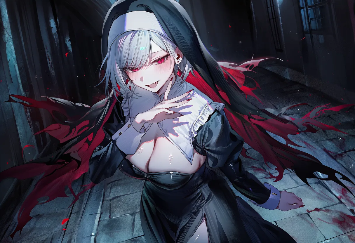 백발, 적안, 풍만 체형 (흡혈귀). 잔혹함, 광기.